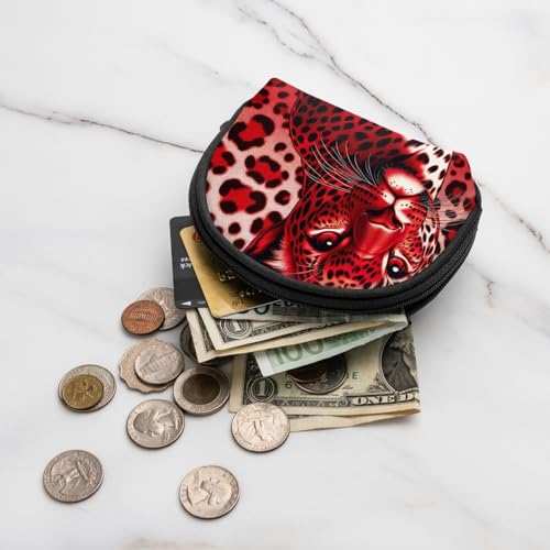 Portable Coin Purse Red-Leopard-Print Mini Zippered Money Pouch Card Holder 1