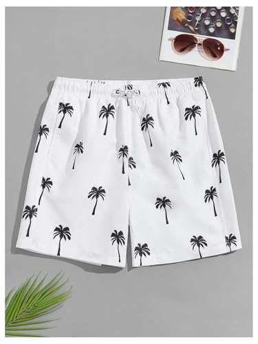 More information about WDIRARA Men's Plant Print Patch Drawstring Waist Summer Beach Hawaii Swim Trunks Shorts