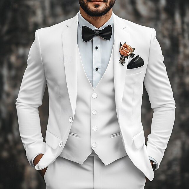 Men's Wedding Suits Notch Lapel White Fashion Formal Solid Colored Standard Fit 3 Piece Single Breasted Two-buttons 1