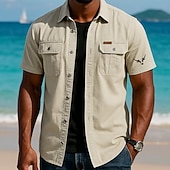 More information about Men's Cow Print Work Shirt Western Shirt Cargo Shirt Short Sleeve Casual Tactical Sports Outdoor WorkWear Summer Spring Turndown Front Two Pockets Cotton Button Up Shirts Beige