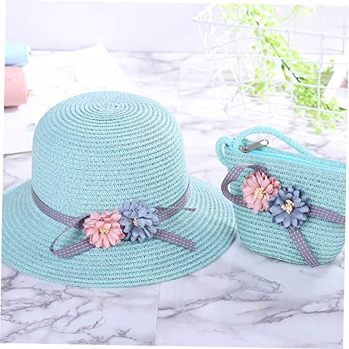 Beaupretty Adorable Girls Straw Hat Boys and Girls Straw Cap Beach Set Bag Sunscreen Set Green 1