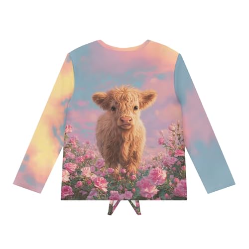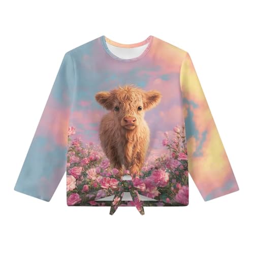 Girls Long Sleeve T-Shirt Casual Tie Hem Tee Tops Graphic Girls Crewneck Tee Soft Kids Clothes Fall 6