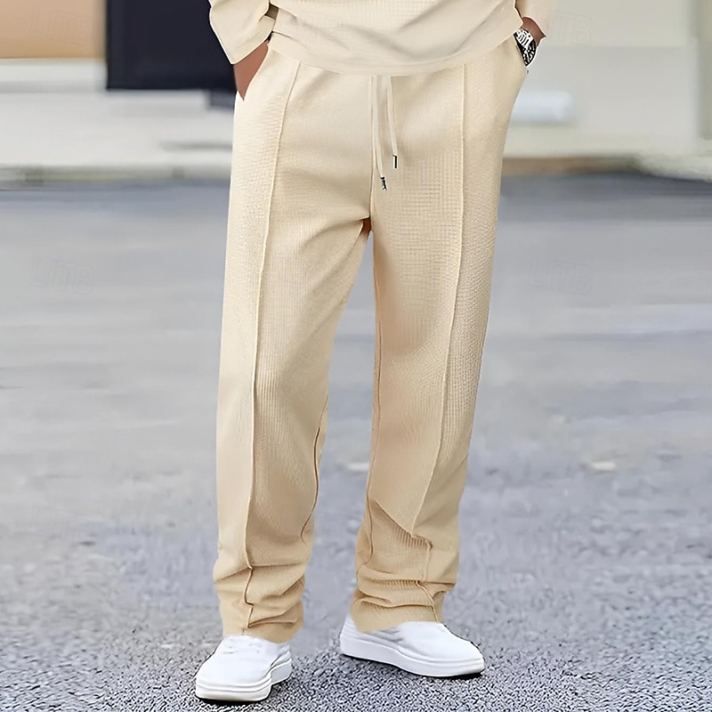More information about Men's Sweatpants Trousers Straight Leg Sweatpants Waffle Pants Pocket Elastic Waist Drawstring Plain Comfort Sports Outdoor Daily Fashion Casual Black White Micro-elastic