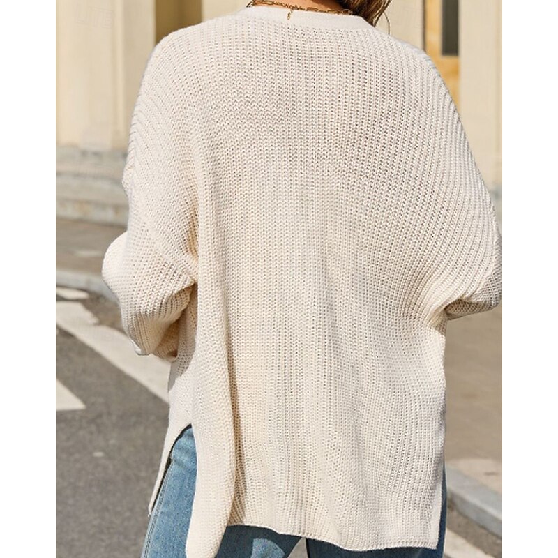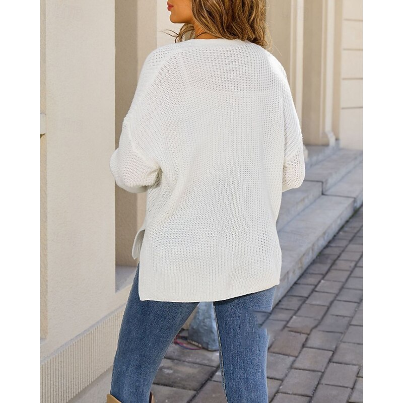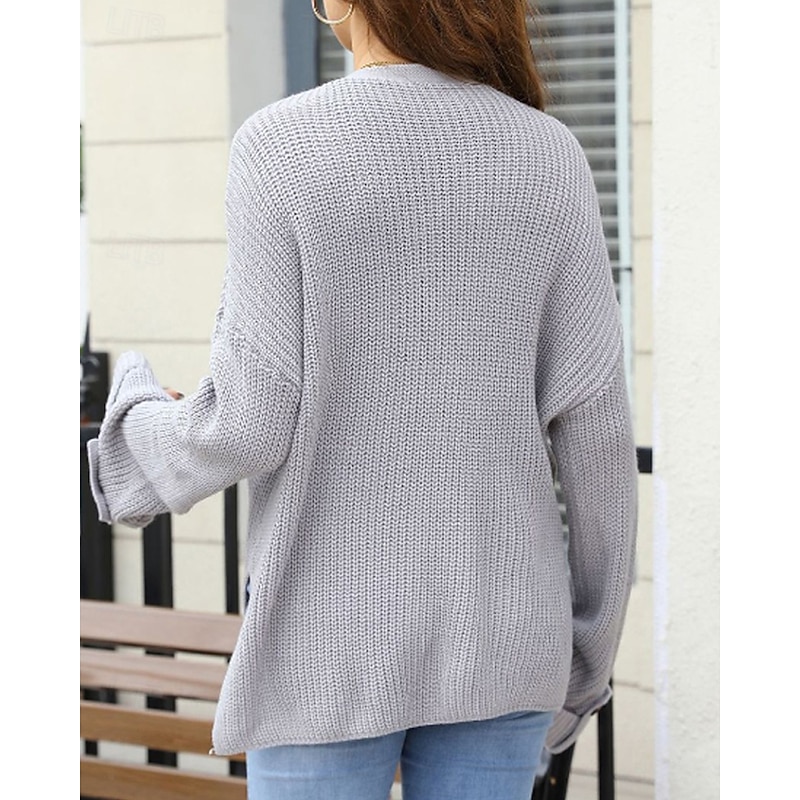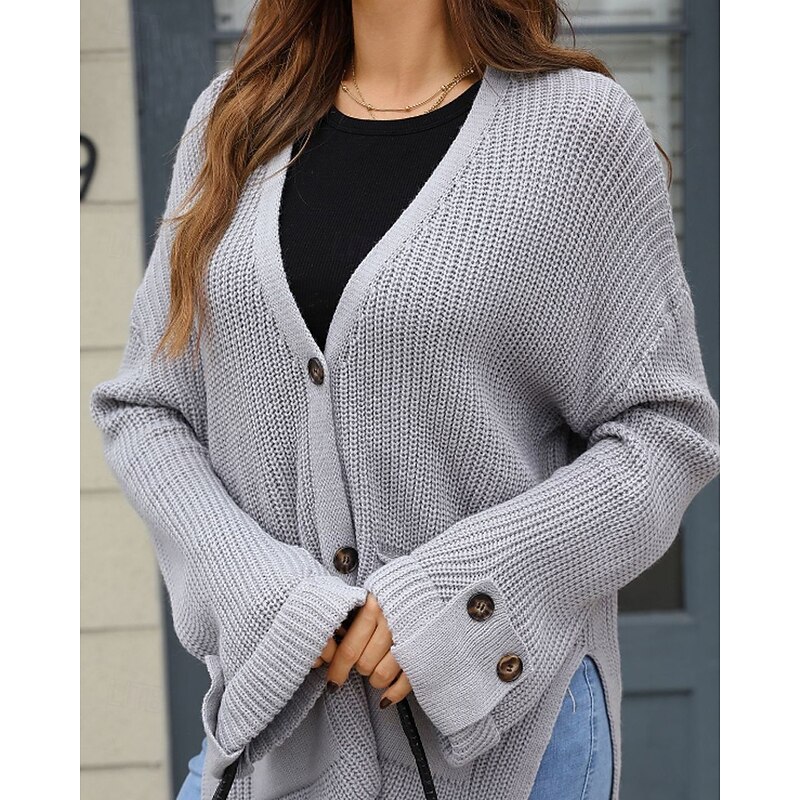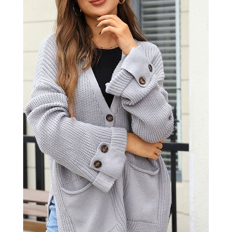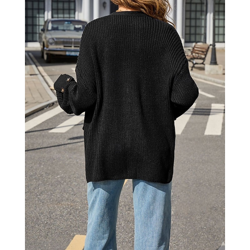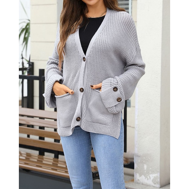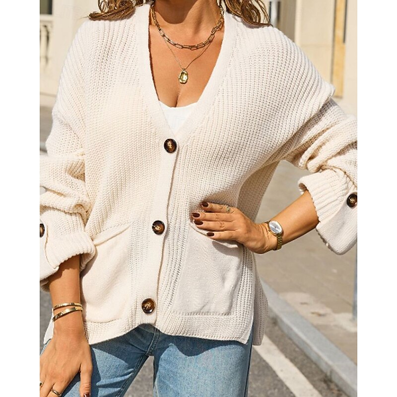 More information about Women's Cardigan Fashion Soft Solid Color Ribbed V Neck Pocket Buttons Knitted Long Sleeve Regular Tops Knit Daily Holiday Going out Black White Fall