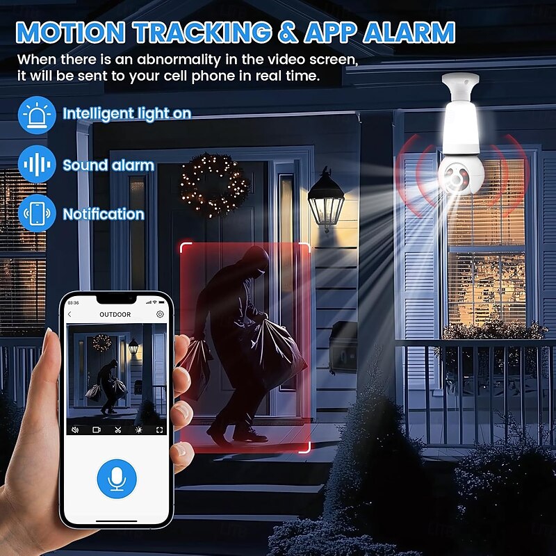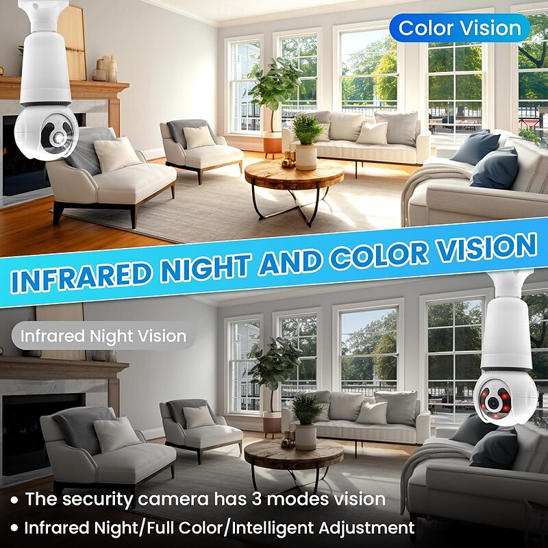 $48.99 - WiFi Light Bulb Security Camera Wireless Outdoor Indoor-2.4&5GHz Dual Band WiFi, 2K Full-Color Night Vision, 360 Pan-Tilt, Motion Detection, Two-Way Audio, Siren Alarm(TF cards not included) 2025. Shop for cheap Decorative Lights online? Buy at lightinthebox.com on sale today!