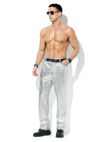 More information about Arjen Kroos Men's Metallic Disco Shiny Pants Wedding Party Prom Straight Leg Trousers