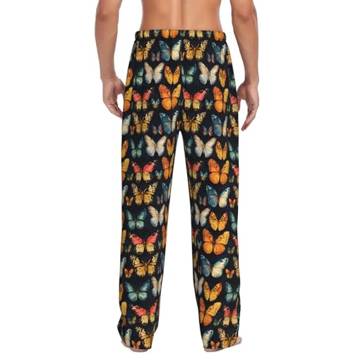 Mens Pajama Pants - Colorful Butterflies Print Soft Sleep Lounge Pants For Men, Casual Pj Bottoms With Pockets 1