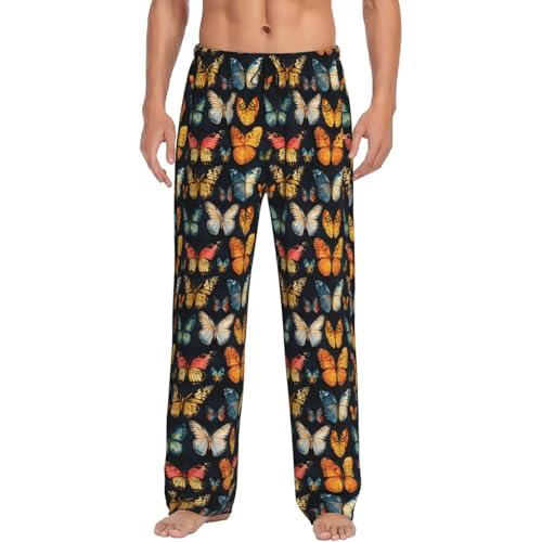 HOT ! Mens Pajama Pants - Colorful Butterflies Print Soft Sleep Lounge Pants For Men, Casual Pj Bottoms With Pockets