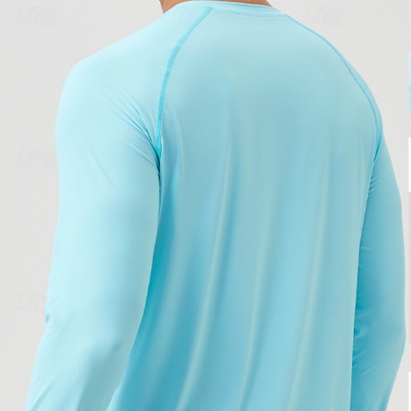 More information about Men's Sun Protection T-shirts Tee Long Sleeve Crew Neck Summer Spring Solid Color Active Crewneck Sports & Outdoor Fishing Light Blue Black White Top Tee for Men
