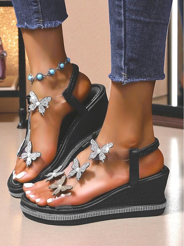 Women's Rhinestone Butterfly Wedge Sandals - Sparkly Platform Party Shoes for Nightlife and Club Events 1