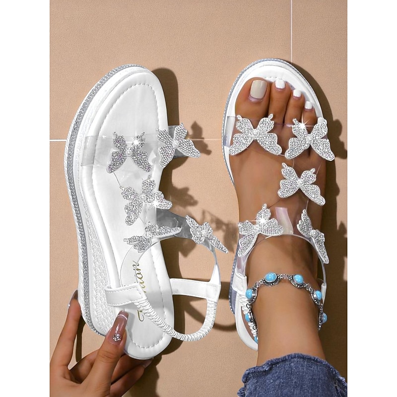 HOT ! Women's Rhinestone Butterfly Wedge Sandals - Sparkly Platform Party Shoes for Nightlife and Club Events