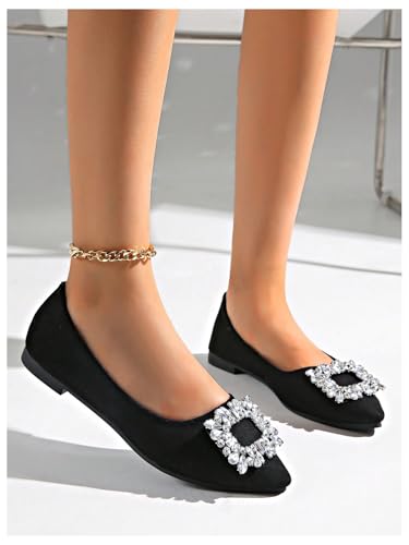 More information about OYOANGLE Women's Rhinestone Ballet Flats Pointed Toe Slip On Elegant Casual Work Office Flat Shoes