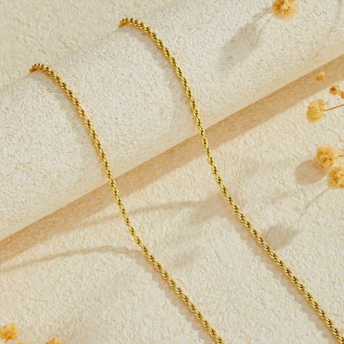 14K Gold Chain for Women and Men 2.5mm Rope Chain Necklace Non-Tarnish Minimalist Unisex 20-24 Inch 1