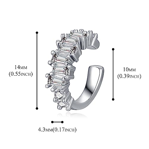 Baguette Earrings Square CZ Paved Ear Cuff for Women Sparkling Cubic Zirconia Sterling Silver Ear Cuff for Women