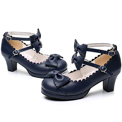 Women's Double Bowtie Straps High Heel Pumps Sweet Princess Girls Lolita Cosplay Shoes 6