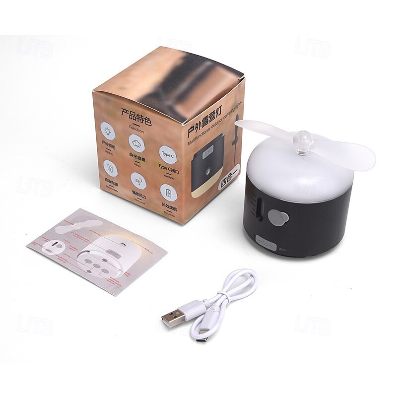 1 Pc Outdoor Camping Light Fan Multi-Function Spray Four Gear Dimming Two Gear Dimming Usb Charging Suspension Hook 11