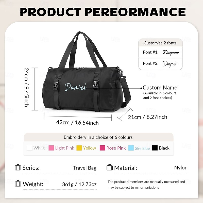Personalized Name Travel Duffle Bag Custom Gift, Multi-Functional Shoulder and Hand Carry Bag, Large Capacity Organizer for Gym, Hiking, Business, Perfect Gift for Family and Friends 7