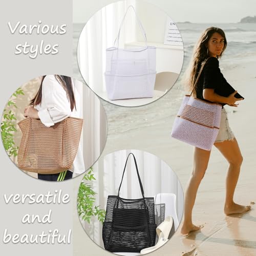 Beach Tote Bag for Women with Pockets, Mesh Holiday Handbag Summer Casual Shoulder Bags for Travel Swimming 5