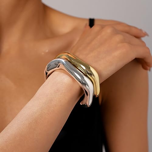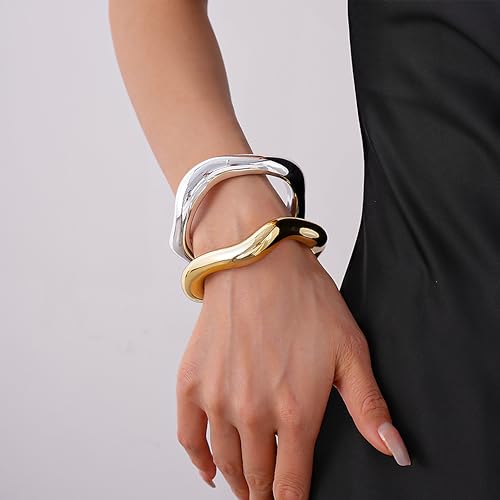 • Stylish Accessory:Chunky gold forearm cuff Elevate your look with these trendy gold bangle bracelets featuring a chunky, wide cuff design Say goodbye to uncomfortable jewelry - this piece is made for you