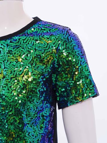 More information about Girls Boys Shiny Metallic T Shirt Short Sleeve Jazz Hip Hop Dance Tops Performance Blouse Festival Party Outfits