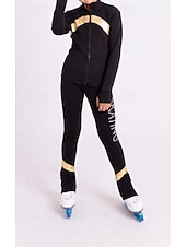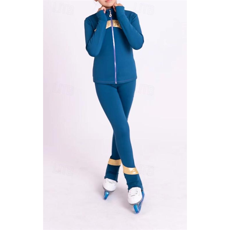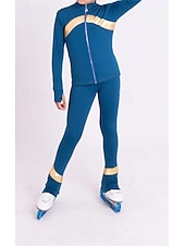 More information about Figure Skating Fleece Jacket Figure Skating Pants Figure Skating Jacket with Pants Women's Girls' Ice Skating Jacket Tights Outfits Black Dark Blue Patchwork Thumbhole Spandex Stretchy Training