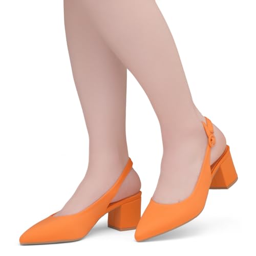 • Pointed Toe Low Block Heels for Women: Classic closed-toe slingback pumps with a sleek pointed toe and 2.25-inch chunky block heel, balancing elegance, comfort, and everyday wear.