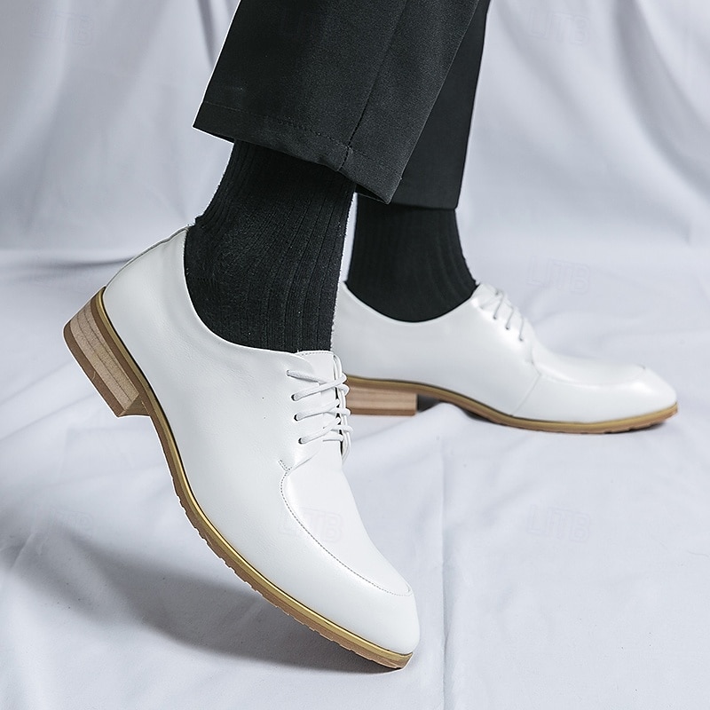 Men's Prom Shoes Elegant White Lace-Up Oxford Shoes, Perfect for Formal Events and Prom Nights 6