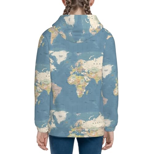 World Map1 Kid Hoodies Boys Zip Up Sweatshirts Girls Pullover with Pocket 4