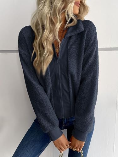 HOT ! Womens Fuzzy Fleece Jackets Long Sleeve Lapel Zipper Coats Warm Winter Casual Trendy Top Outfits with Pockets