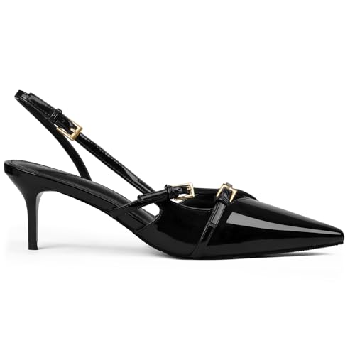 MUCCCUTE Kitten Heels for Women Pointed Toe Slingback Low Heels with Buckle Strap Heeled Pumps 1