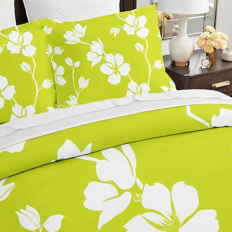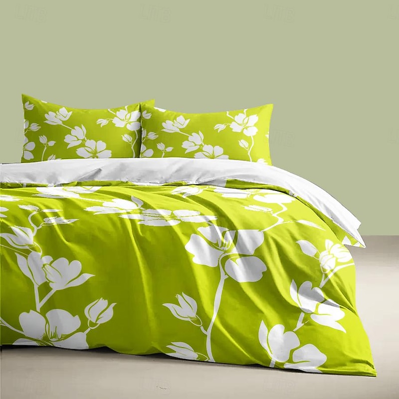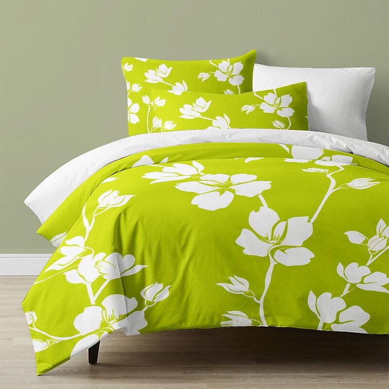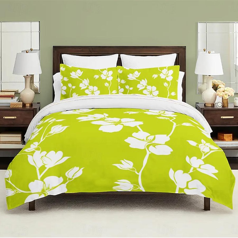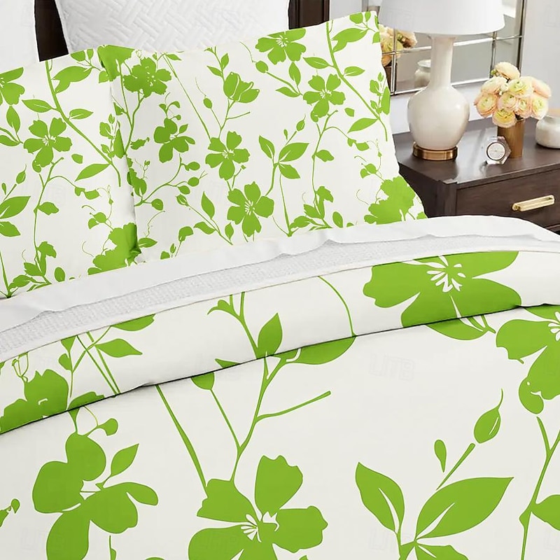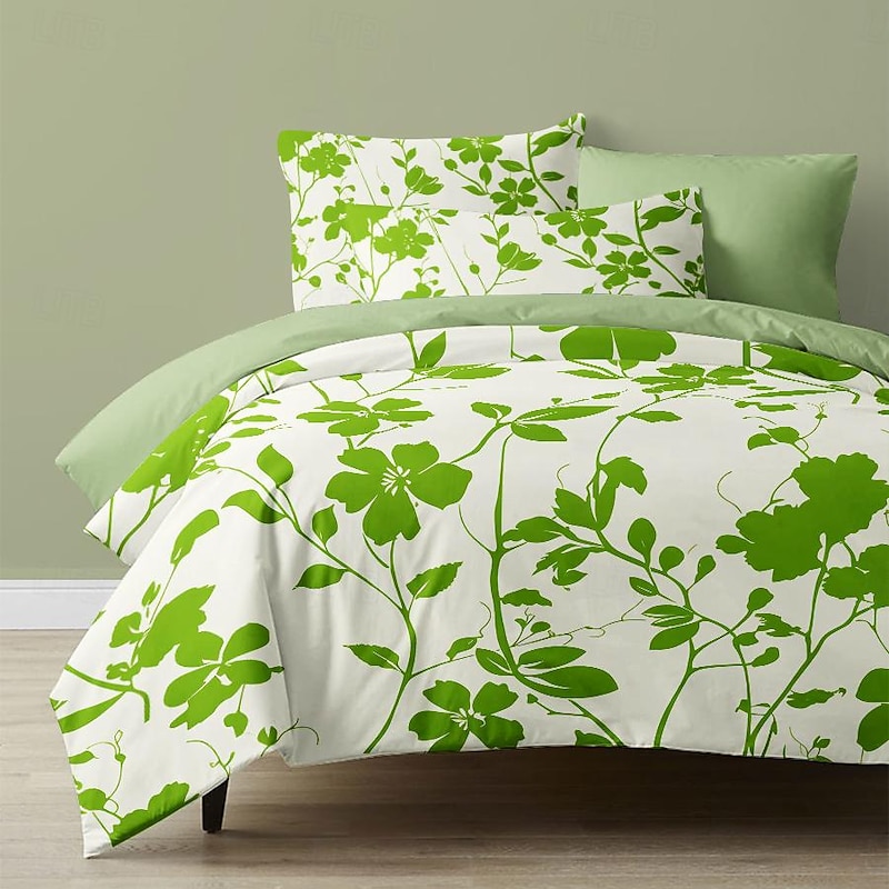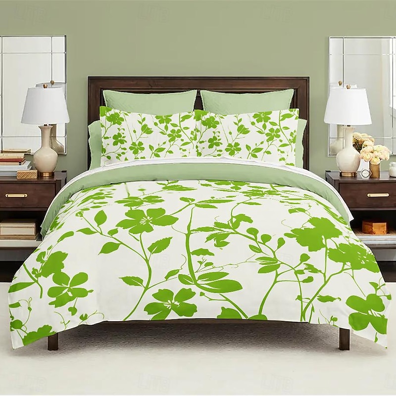 Green Leaves Pattern Duvet Cover Set Set Soft 3-Piece Luxury Cotton Bedding Set Home Decor Gift Twin Full King Queen Size Duvet Cover 1