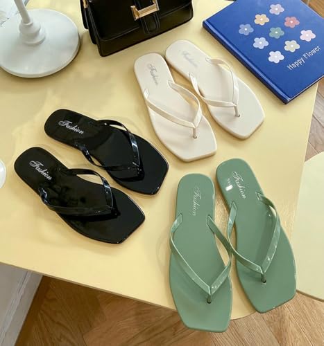Women’s Flat Flip Flops Versatile Solid Color Indoor Outdoor Non-slip Slippers Summer Pool Beach Cozy Slip-on Sandals 6