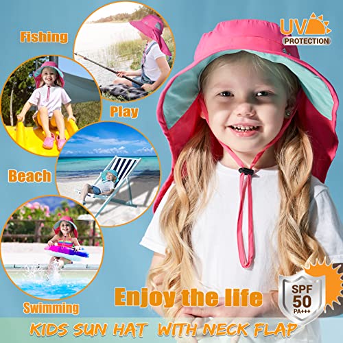 Kids Sun Hats UPF 50+ Sun Protection Hat for Kids with Neck Flap Adjustable Large Brim Beach Fishing Hat for Age 3-12 5
