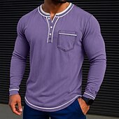More information about Men's Henley Shirt Long Sleeve Henley Spring Fall All Seasons Vintage Retro Vintage Casual 2 in 1 Front Pocket Casual Gray Wine Purple Top Tee for Men