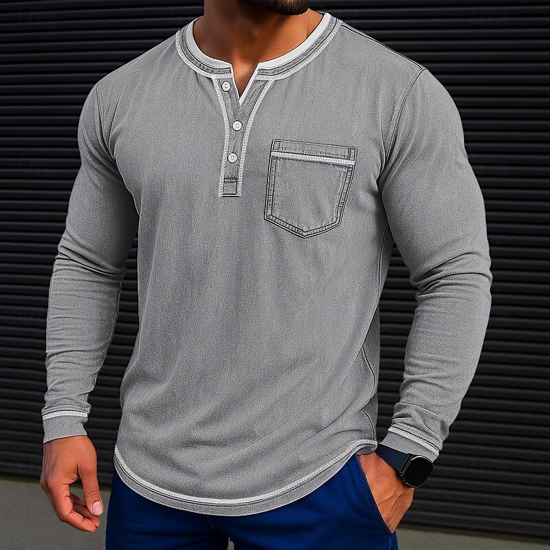 Men's Henley Shirt Long Sleeve Henley Spring Fall All Seasons Vintage Retro Vintage Casual 2 in 1 Front Pocket Casual Gray Wine Purple Top Tee for Men 1
