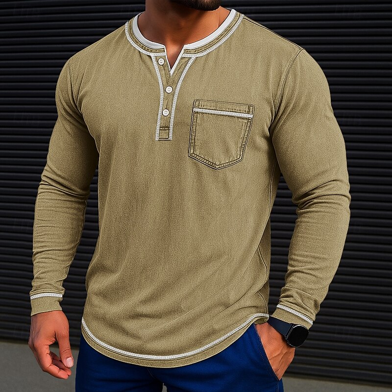 Men's Henley Shirt Long Sleeve Henley Spring Fall All Seasons Vintage Retro Vintage Casual 2 in 1 Front Pocket Casual Gray Wine Purple Top Tee for Men 13