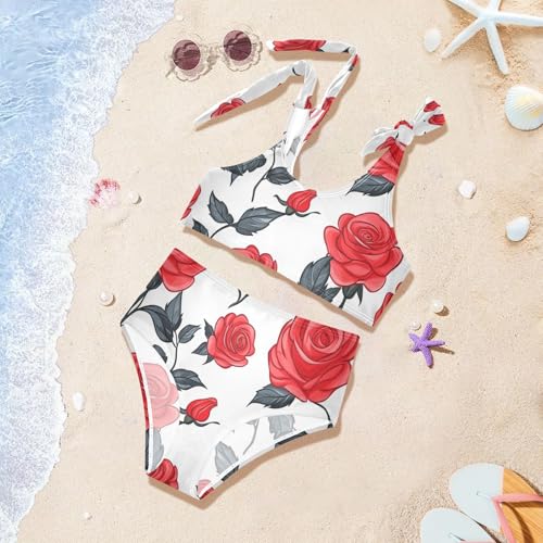 KLL Floral Pattern Red Roses Girls' Two Pieces Bikini Sets Beach Swimsuits Swimwear Adjustable Shoulder Strap 5