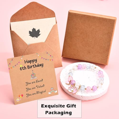 • 6 Year Old Girl Birthday Gift Ideas: This girls unicorn bracelet came with a gift box, a Happy 6th Birthday card and a blank greeting card, which will be the cutest birthday gift for 6 year old girls, niece, daughter, granddaughter.
