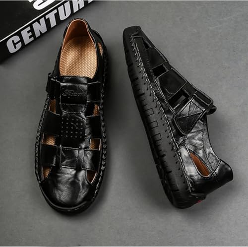 Myallfeet Men's Business Leather Outdoor Beach Sandals Comfortable Hand Sewn Breathable Casual Sandals Summer Outdoor Walking Sandals 5