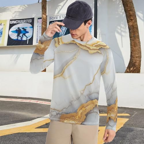 HOT ! Marble White Yellow UPF 50+ Sun Shirts for Men Slim fit Elasticity UV Protection Long Sleeve Running