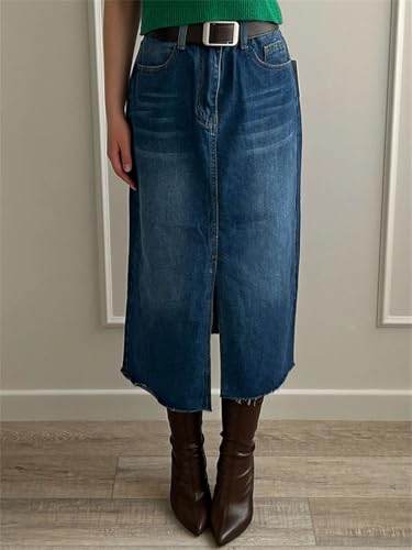 More information about Long Slit Denim Skirts for Women High Waist A Line Maxi Denim Skirt