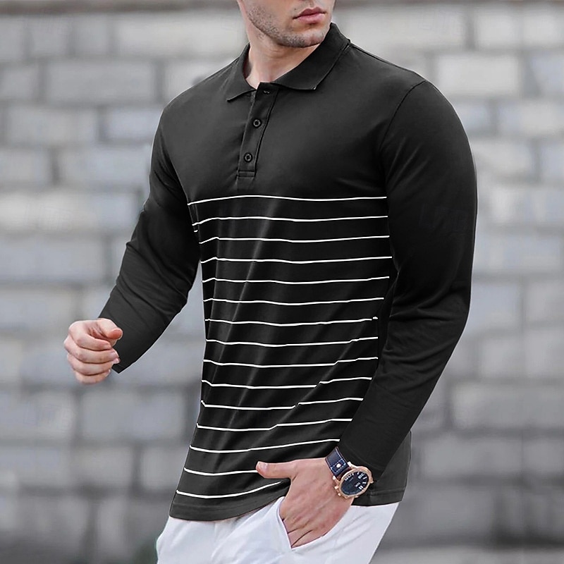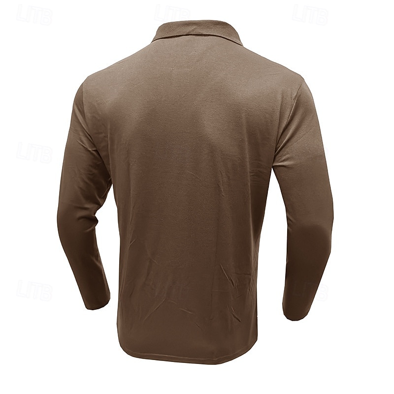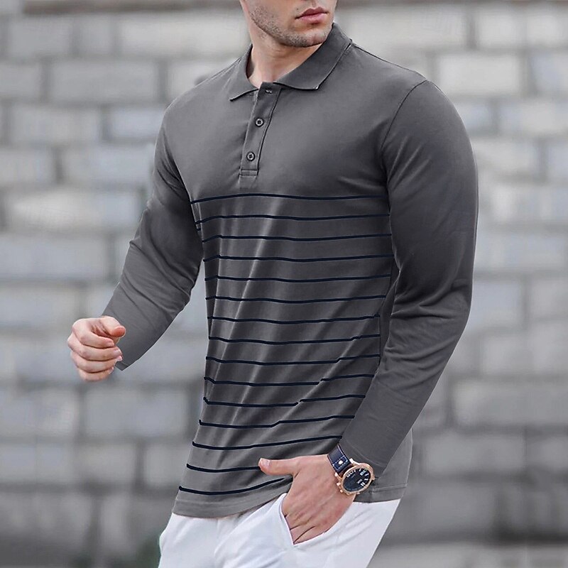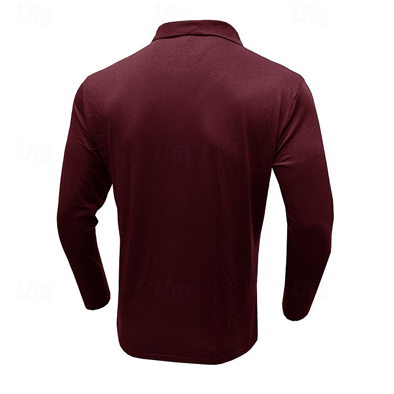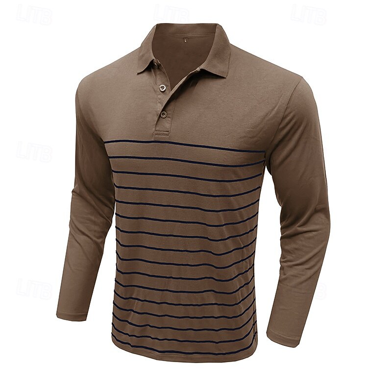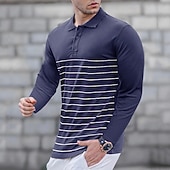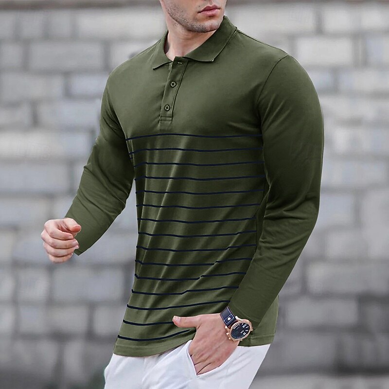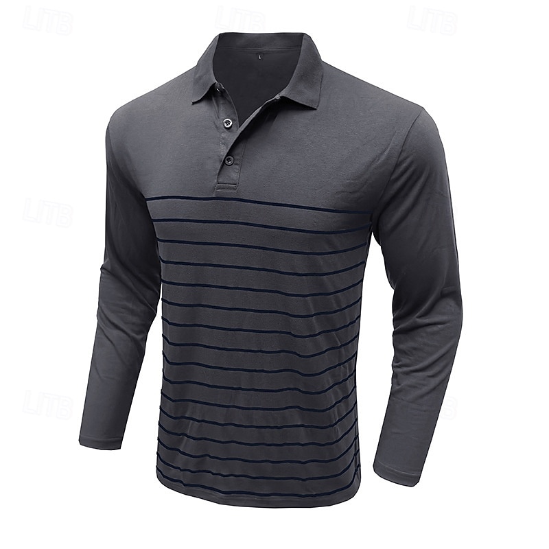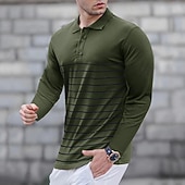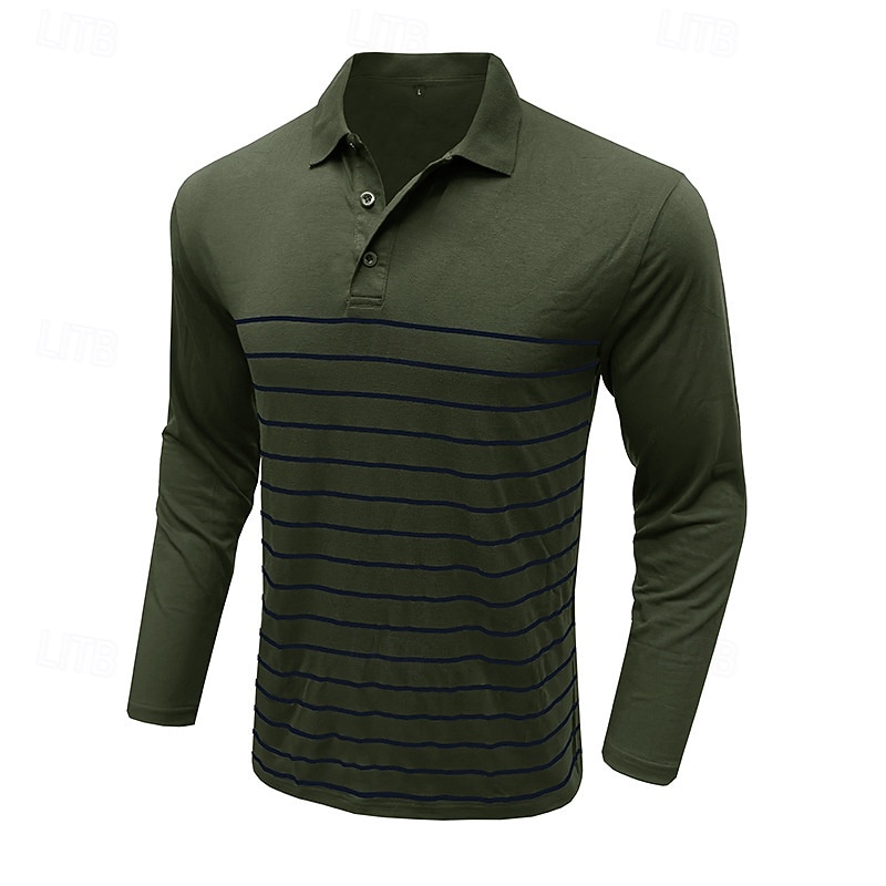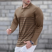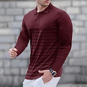 More information about Men's Golf Shirt Golf Polo Work Casual Lapel Long Sleeve Basic Modern Stripes Button Spring & Fall Regular Fit Wine Black Army Green Royal Blue Khaki Gray Golf Shirt