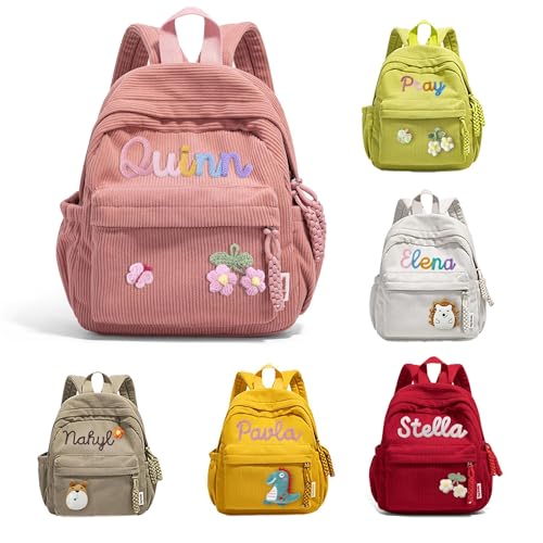 • PERSONALIZED DESIGN: Charming corduroy backpack featuring customizable name and delightful floral embellishments for a unique, personal touch