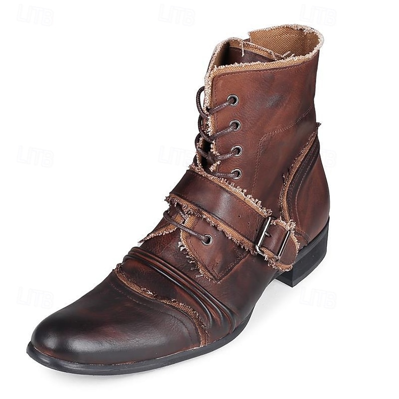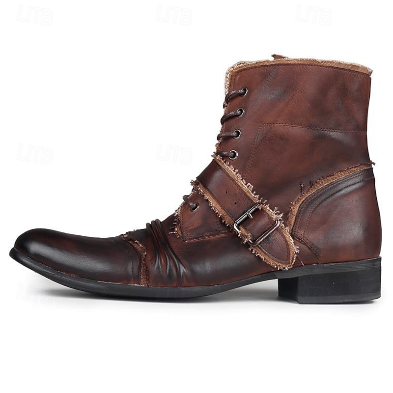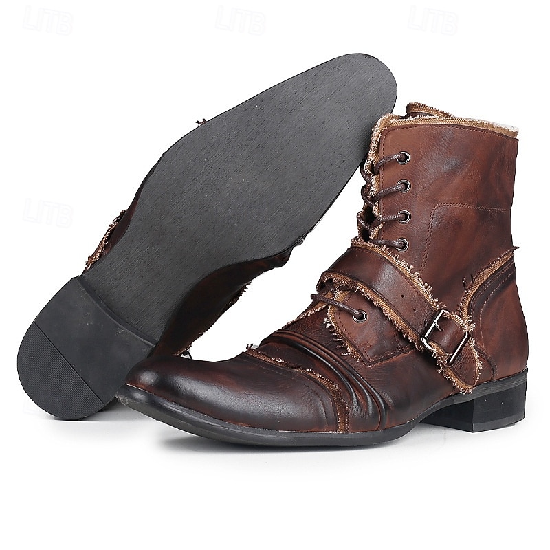 HOT ! Men's Retro Brown Leather Biker Boots – Handmade High Top Motorcycle Boots with Buckle Accents for Punk, Gothic and Casual Streetwear