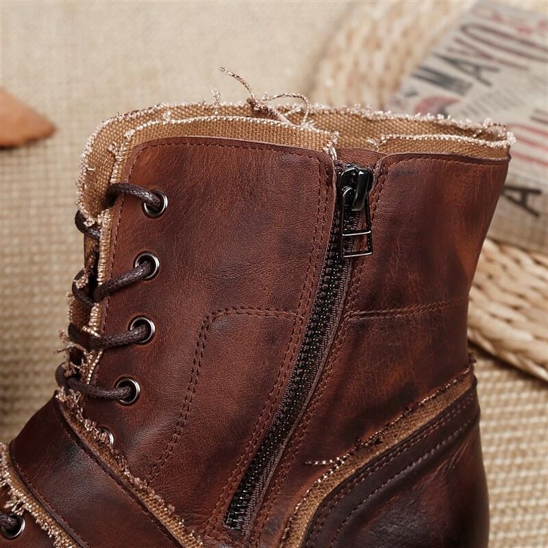 Men's Retro Brown Leather Biker Boots – Handmade High Top Motorcycle Boots with Buckle Accents for Punk, Gothic and Casual Streetwear 4