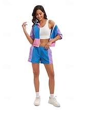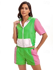 More information about 1980s Women's Color Block Windbreaker 2 Piece Outfits Short Sleeve Zip Front Elastic Waist Tracksuit Set