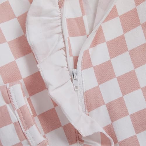 Karuedoo Newborn Baby Girl Clothes Checkered Ruffle Long Sleeve Zipper Footie Romper One-Piece Footed Jumpsuit Sleeper 7