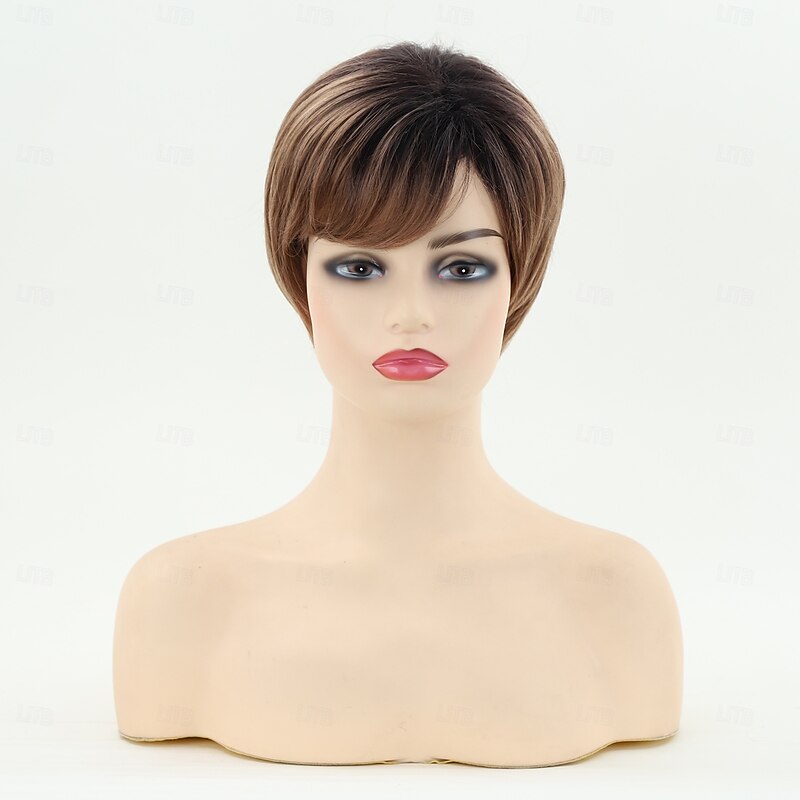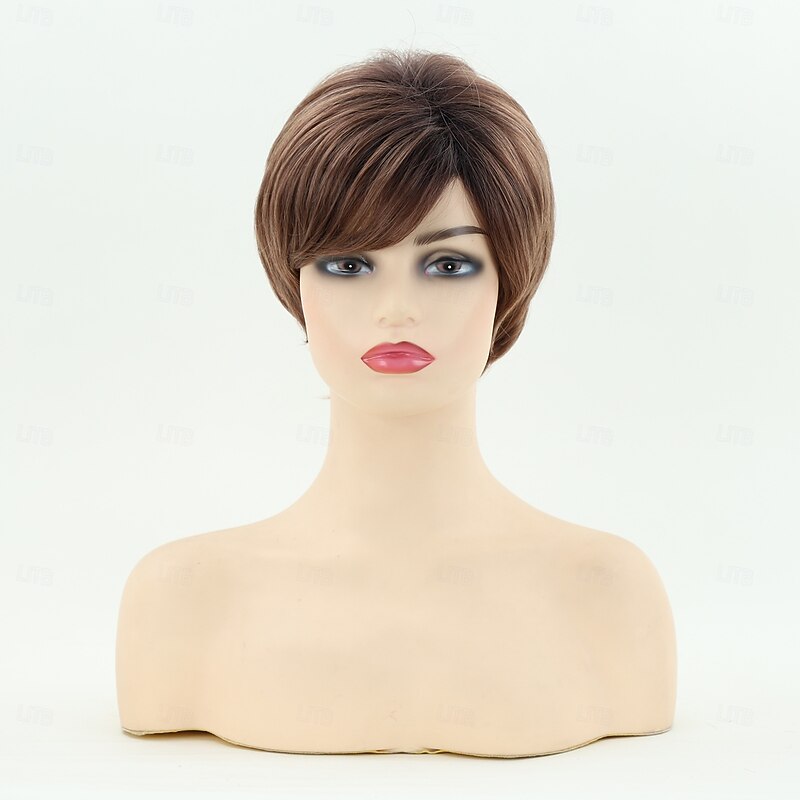 $24.99 - Brown Curly Pixie Wigs for White Women Short Fluffy White Hair with Bangs Natural Synthetic Heat Resistant Wig 2025. Shop for cheap Older Wigs online? Buy at lightinthebox.com on sale today!
