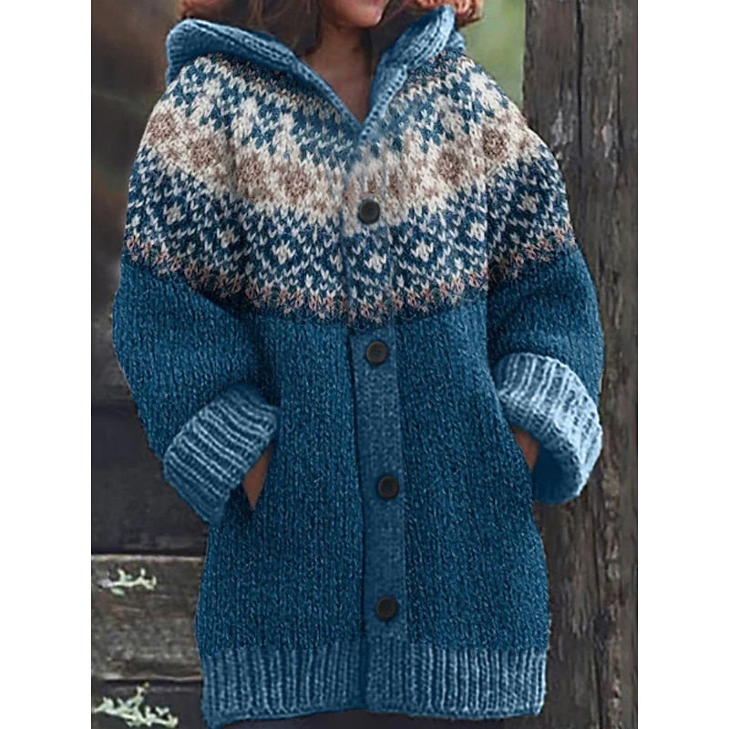 More information about Women's Sweater Cardigan Elegant Fashion Streetwear Geometric Striped Hooded Pocket Knitted Print Long Sleeve Regular Tops Knit Outdoor Daily Weekend Navy Blue Royal Blue Fall Winter