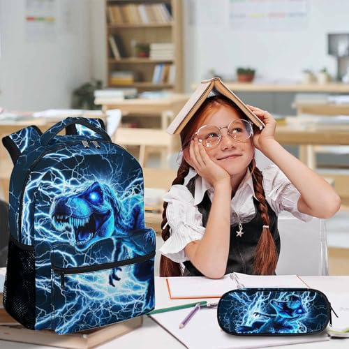 Dinosaur Backpack for Boys, Set of 3 Kids Lighting Bookbag Gift for Kindergarten Preschool Primary, 17 Inch Lightweight Cool Personalized Backpacks for School 2
